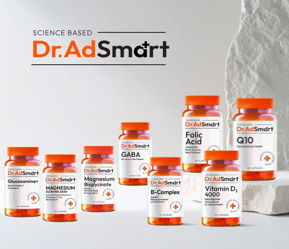 Dr.AD Smart on teaduspõhine toidulisandite bränd, mis pakub kvaliteetseid vitamiine ja mineraalaineid. Valikusse kuuluvad mitmed olulised vitamiinid ja toidulisandid, sealhulgas D-vitamiin 2000 IU ja 4000 IU, B-vitamiinid, seleen, kaltsium ning teised olulised toidulisandid. Kõik Dr.AD Smart tooted on loodud koostöös spetsialistidega ning vastavad rangetele kvaliteedinõuetele.